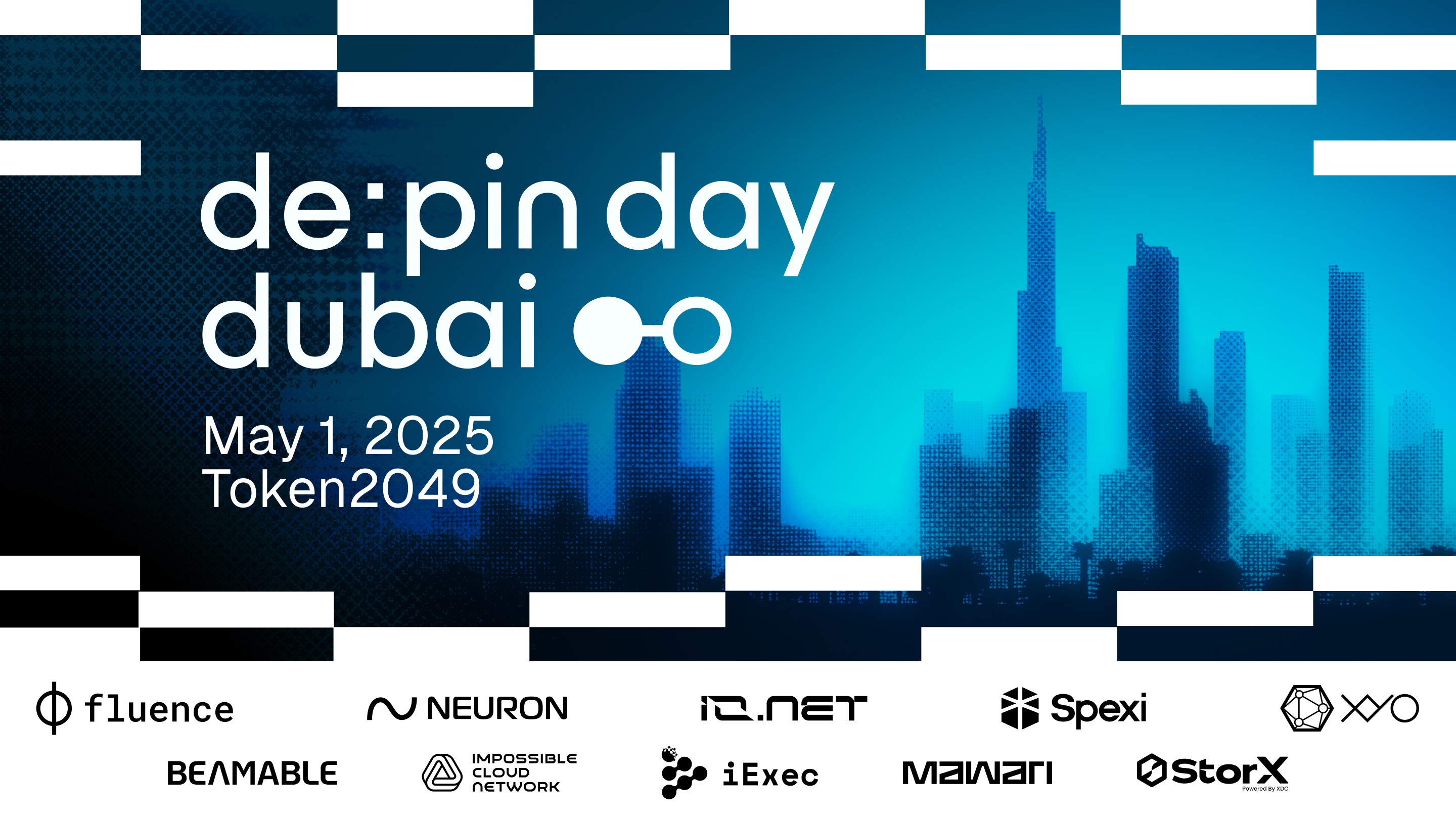 Hosted by Fluence for the benefit of the DePIN community, DePIN Day Dubai organised in partnership with Neuron, Beamable, Entropy, Impossible Cloud Network, io.net, iExec, Mawari, Spexi, Storx Network, XYO, is a the leading conference series focused on Decentralized Physical Infrastructure Networks. Taking place alongside Token 2049 Dubai, the pre-eminent crypto focused event in Dubai, DePIN Day Dubai brings together leading founders, developers, investors and researchers who are actively building the real-world layer of Web3.